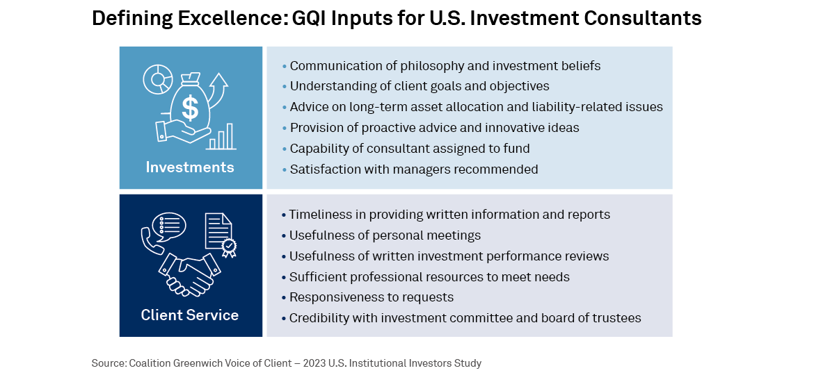 Every year, asset owners participate in the Coalition Greenwich Voice of Client – U.S. Institutional Investors Study to name the investment consultants they use and to rate the service these partners provide across a range of functions. Those quantitative scores are used to calculate the Greenwich Quality Index (GQI). Consultants with the highest GQI scores are named Greenwich Quality Leaders.