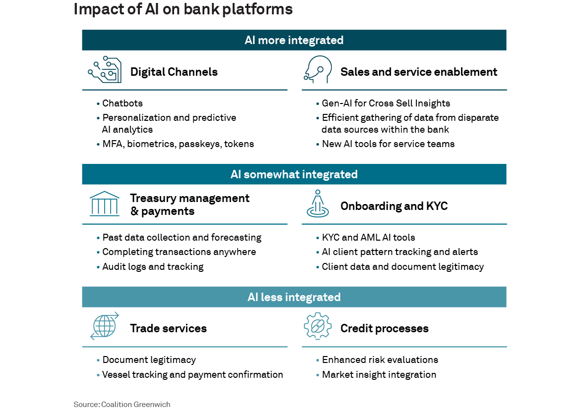It’s hard to overstate the impact artificial intelligence is having on the banking industry. Technology has already become a primary driver of business results for corporate and commercial banks and a centerpiece of client relationships. Going forward, banks’ ability to integrate AI into workflows will increasingly help determine their ability to attract and retain corporate banking clients and to maintain and grow revenues and profits.