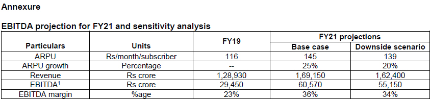 1 Our EBITDA impact analysis is based on Bharti Airtel-India mobility business, Vodafone Idea and Reliance Jio. Whereas Debt/EBITDA is based on Bharti Airtel-consolidated, Vodafone Idea and Reliance Jio.