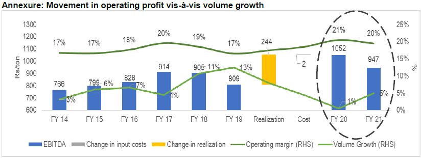 Cement prices are expected to remain stable in fiscal 2021 after high volatility seen this fiscal. The expected recovery in demand and high utilisation of clinker capacities at 78% -- because new capacity additions are skewed towards split grinding units – would restrict any steep decline in cement realisations.