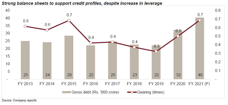 Consequently, credit metrics of the sector would be constrained, but credit profiles will be supported by strong balance sheets and expectation of a bounce-back next fiscal.