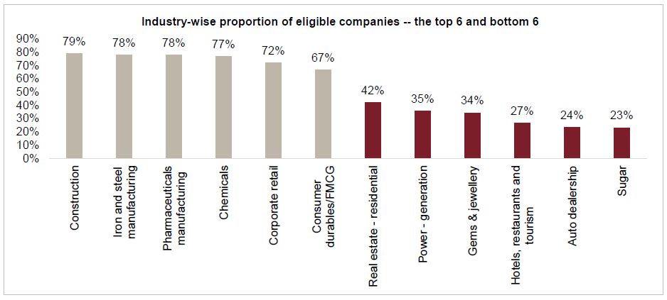 In the less-resilient sectors such as auto dealerships, gems and jewellery, hotels, restaurants and tourism, power generation, and real estate, opportunities for debt restructuring could be a little lower as they can take longer to recover to pre-pandemic business levels. Here, only one in three companies could be eligible for restructuring.
