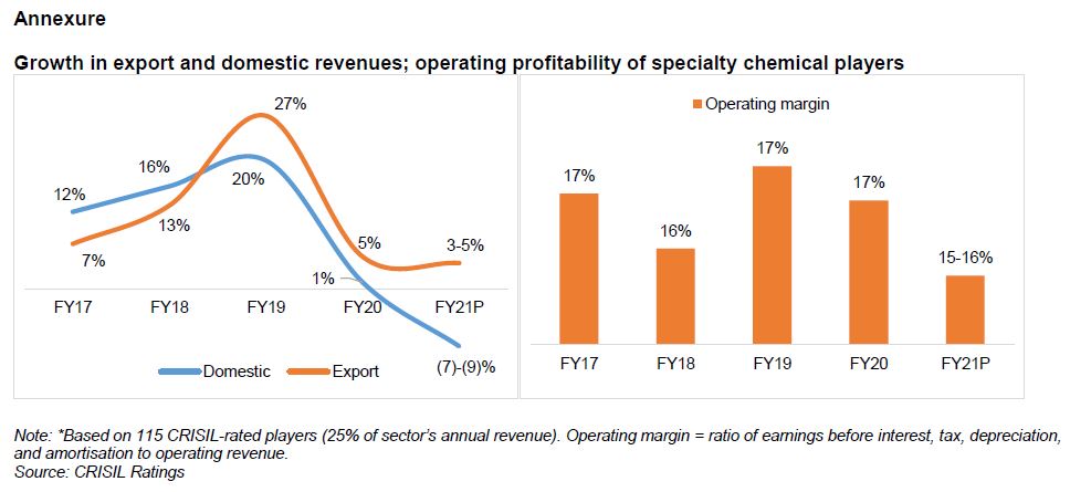 Says Sushant Sarode, Associate Director, CRISIL Ratings, “Limited moderation in operating performance, along with reduced capex intensity and well-capitalised balance sheets will help sustain gearing at comfortable levels of 0.5-0.6 times this fiscal (0.4 times in fiscal 2020). This will ensure stability in credit profiles of specialty chemical makers.”