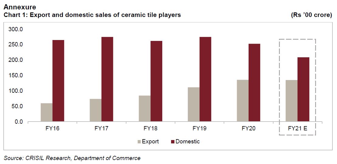 Says Nitin Kansal, Director, CRISIL Ratings, “Net-net, ceramic tile revenues are likely to de-grow 12% this fiscal, compared with a growth of 4.5% on average in the past five fiscals, with exports limiting the slide in domestic sales. However, despite the revenue contraction, operating profitability of ceramic tile companies will remain ~11% due to lower gas prices.”