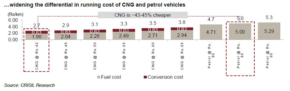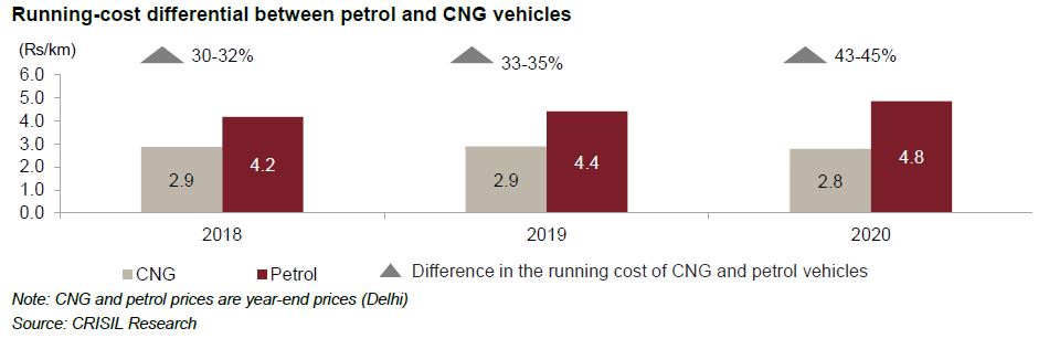 Note 1: Annual registrations of CNG vehicles only, and petrol+CNG vehicles