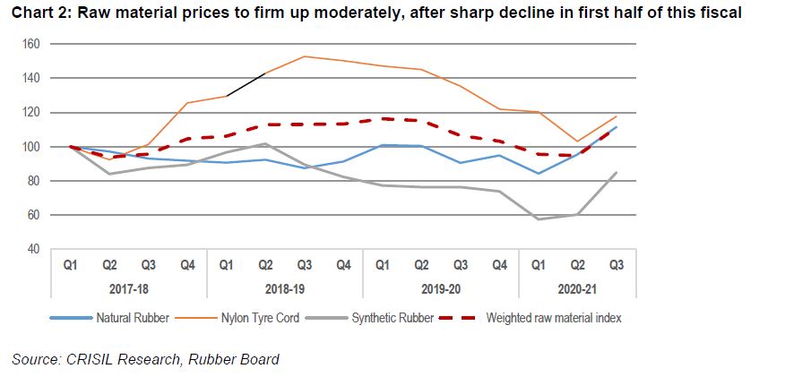 Though prices are expected to firm up moderately in the second half on account of lower global production of natural rubber and increase in crude prices, overall input cost will still be lower this fiscal (see chart in annexure).
