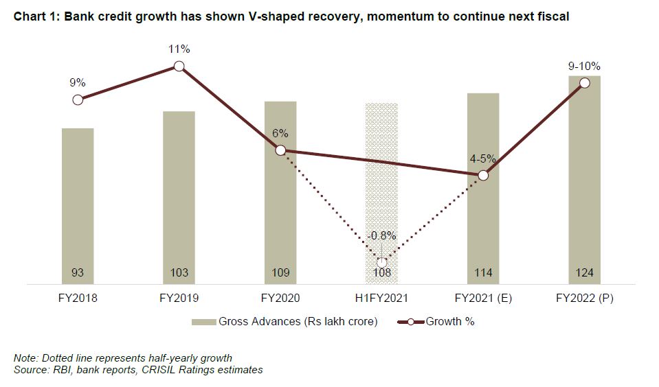 Bank credit is seen growing 400-500 basis points (bps) higher at 9-10% next fiscal as the Indian economy recovers, supported by budgetary stimulants and measures announced by the Reserve Bank of India (RBI). CRISIL has already raised India’s GDP growth forecast for next fiscal to 11%, or 100 bps higher than what was presaged in December 2020.