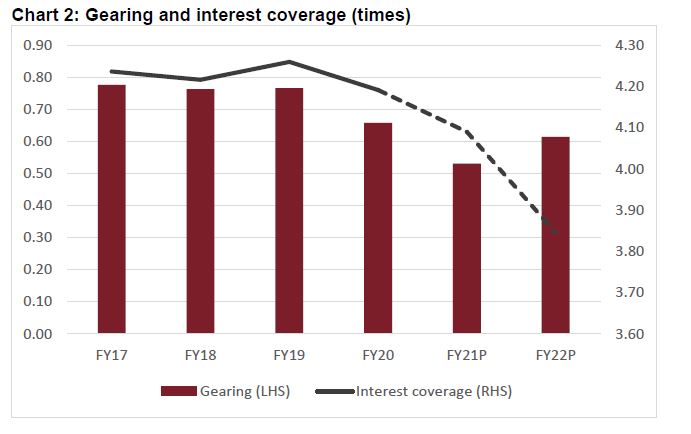 Moderation in operating margin will lead to a decline in the interest coverage ratio for the sample set to 3.8 times next fiscal from 4.1-4.3 times over the past two fiscals (refer chart 2).