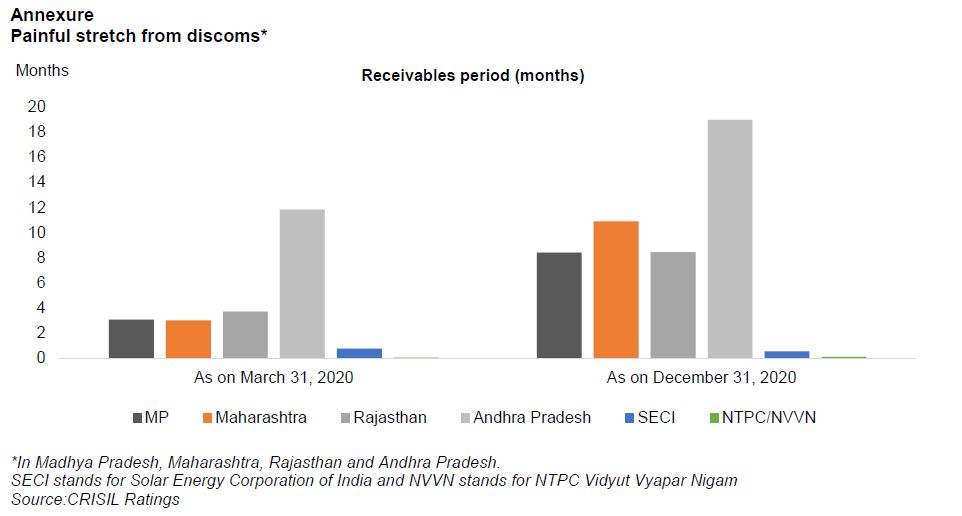 Says Manish Gupta, Senior Director, CRISIL Ratings “For wind power projects rated by CRISIL, the aggregate receivables period from these state discoms has increased to ~9 months from the invoice date, compared with 3-5 months on average at March 2020. For projects in Andhra Pradesh, it has stretched to as much as 18-19 months4.”