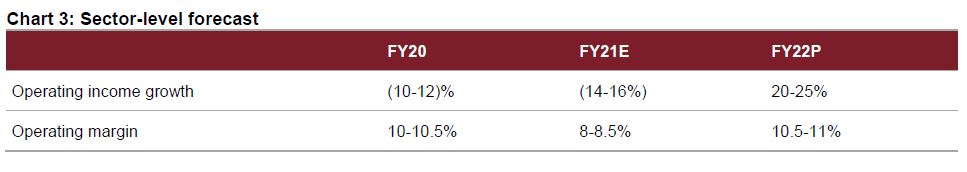 Spreads1 (difference between cotton and yarn prices), too, have improved as a rebound in global demand lifted prices of yarn higher than cotton (up ~20% over April-December 2020, compared with 13% for cotton). Spreads had narrowed to Rs 80-85 per kg in June-August from as wide as Rs 103 in May, and clawed back to Rs 90-95 in September-December (see chart 2 in annexure). The trend should continue next fiscal, given improving demand.
