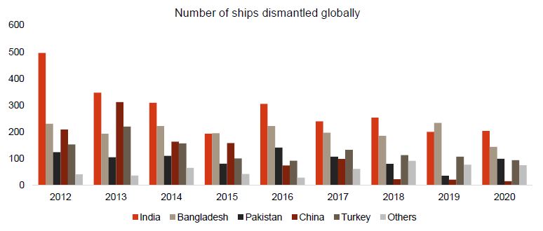A plunge in global trade due to the Covid-19 pandemic weighed on sea freight, hurting viability of shippers and making more vessels available for dismantling at cheaper rates. Consequently, from the second quarter starting July 2020, there was a sharp rise in the number of vessels bought for breaking, compared with muted activity in the first quarter.
