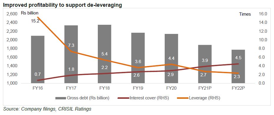 Says Naveen Vaidyanathan, Associate Director, CRISIL Ratings, “The five steel makers could cut ~ Rs 25,000 crore of debt this fiscal. Next fiscal, despite capex rising ~15%, they can slice debt by another Rs 10,000 crore. That would drive a sharp improvement in credit metrics with financial leverage (ratio of debt to Ebitda) declining below 2.5 times next fiscal compared with above 4.0 times in fiscal 2020.”