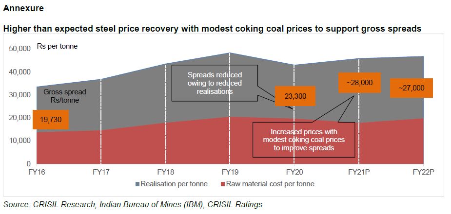 Says Manish Gupta, Senior Director, CRISIL Ratings, “So while the tailwinds to realisations from higher input costs and global prices could abate going forward, domestic demand growth would provide an offset. Consequently, realisation next fiscal may still be ~15% higher than the average of the past five years. That, along with rising volumes and moderate coking coal prices would mean healthy operating margins of ~23% next fiscal, compared with ~25% likely this fiscal.”