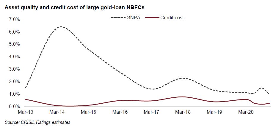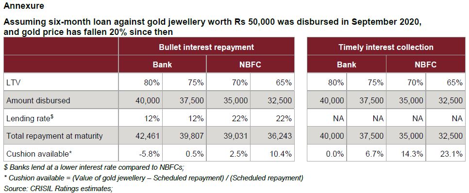 Says Ajit Velonie, Director, CRISIL Ratings, “While gross non-performing assets (GNPA) could rise, ultimate credit cost – a more appropriate indicator of asset quality for gold loans – is not expected to. Historically, while GNPAs had risen to as much as 7% for NBFCs, credit costs were low at ~10-80 basis points (see annexure). This underscores sound business acumen and strong track record of timely auctions. For banks, given the sharp growth they have seen, monitoring LTV and staying agile are imperatives to avert potential asset-quality challenges.”