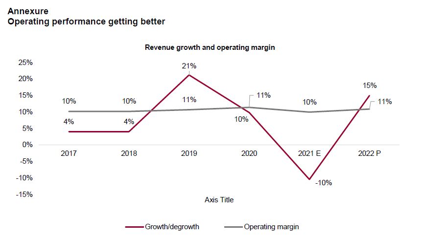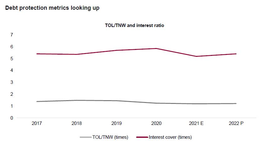 This fiscal, working capital management and liquidity will be supported by the continuation of relief measures announced last fiscal. A reduction in performance security to 3% from 5-10% (for existing projects and those to be awarded up to December 2021), has lowered the bank guarantee requirement and consequently, reduced the margin-money requirement. Bills are also being cleared on a monthly – instead of milestone – basis. The release of retention money held by counterparties to the extent of work completed and approved, have also augmented cash flows.