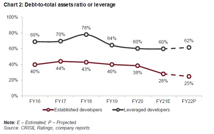 Says Anand Kulkarni, Director, CRISIL Ratings, “Established, prudent developers have well-managed balance sheets, reflected in comfortable debt-to-total assets ratio of below 30%, and are also well placed in terms of liquidity. They had raised ~Rs 44,000 crore via equity, and land and commercial assets monetisation between fiscals 2016-2021. The improved financials will come in handy to tackle stress from the second wave, meet growth needs and keep their credit profiles stable.”