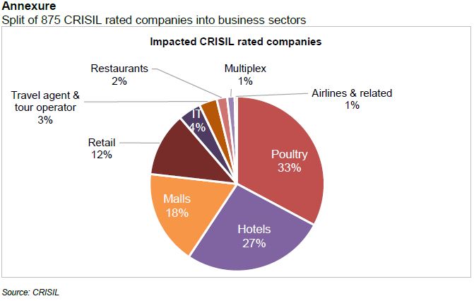 CRISIL has ratings on around 875 companies linked to these sectors. The ability of these companies to sustain operations and ensure timely servicing of debt obligations will be monitored closely. Companies with healthy liquidity, lower debt and flexible cost structure would fare better.