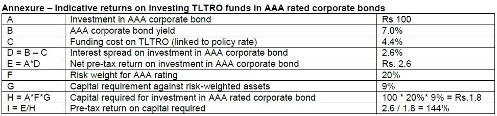 Under TLTRO, the RBI will conduct auctions of term repos of up to three years tenure for a maximum Rs 1 lakh crore at a floating rate linked to the policy repo rate. Liquidity thus availed of will have to be deployed in investment-grade corporate bonds and commercial papers – 50% in primary issuances, and 50% in secondary market securities – and be held to maturity (HTM).