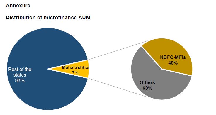 The exposure of CRISIL-rated NBFC-MFIs to Maharashtra ranges from 5% to 28% of their total loan book, and accounts for over 65% of the Maharashtra’s MFI AUM.