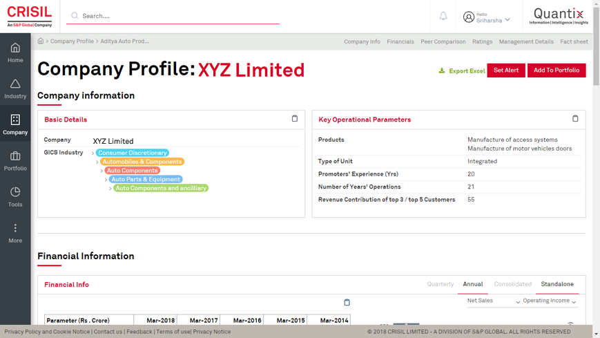 Quantix Company Profile is your one-stop solution for background, operational, financials, rating, capital market details and management details