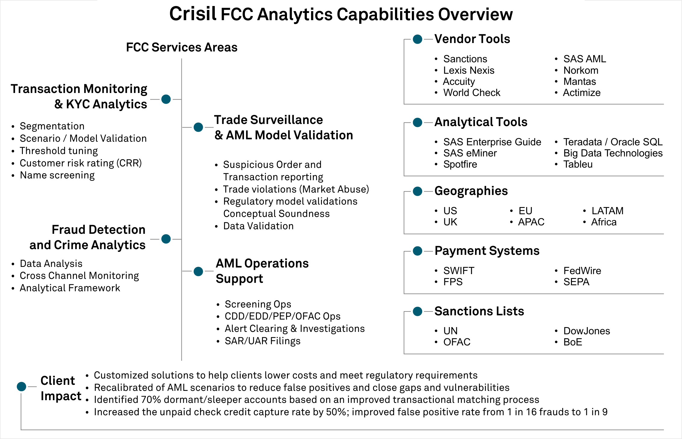 CRISIL is one of the world’s leading providers of Financial Crime Management Solutions. CRISIL's solutions enable organizations to combat evolving financial crime threats and challenges in their business, while also meeting regulatory requirements and stakeholder expectations. Our people have in-depth knowledge of the newest analytical techniques and innovative machine learning and AI methodologies used to combat financial crime.