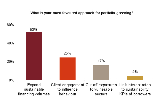 During the event, RISE and Trucost ran a few live poll questions, to get insights on industry thinking around climate risk. From the results below, it is clear that banks have divergent views around key decision points in the evolving space of climate risk. This reinforces our view that banks can benefit from industry collaboration which can be facilitated through climate risk SCAN.