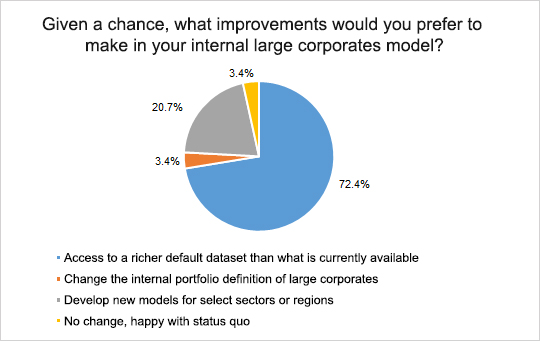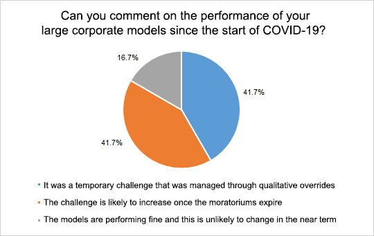 Most banks acknowledged the challenges faced in their low default portfolios, and that they mainly stem from the inadequacy of internal defaults. Furthermore, more than 80% of the banks said that their model outcomes were challenged since the start of the COVID-19 crisis, and half of this group felt that it may get even more challenging ahead once the moratorium period comes to an end. This hints at a possible need for re-visiting models, especially for those banks where such models have been developed many years ago. Furthermore, TRIM and Basel III reform are other driving factors for model re-development.