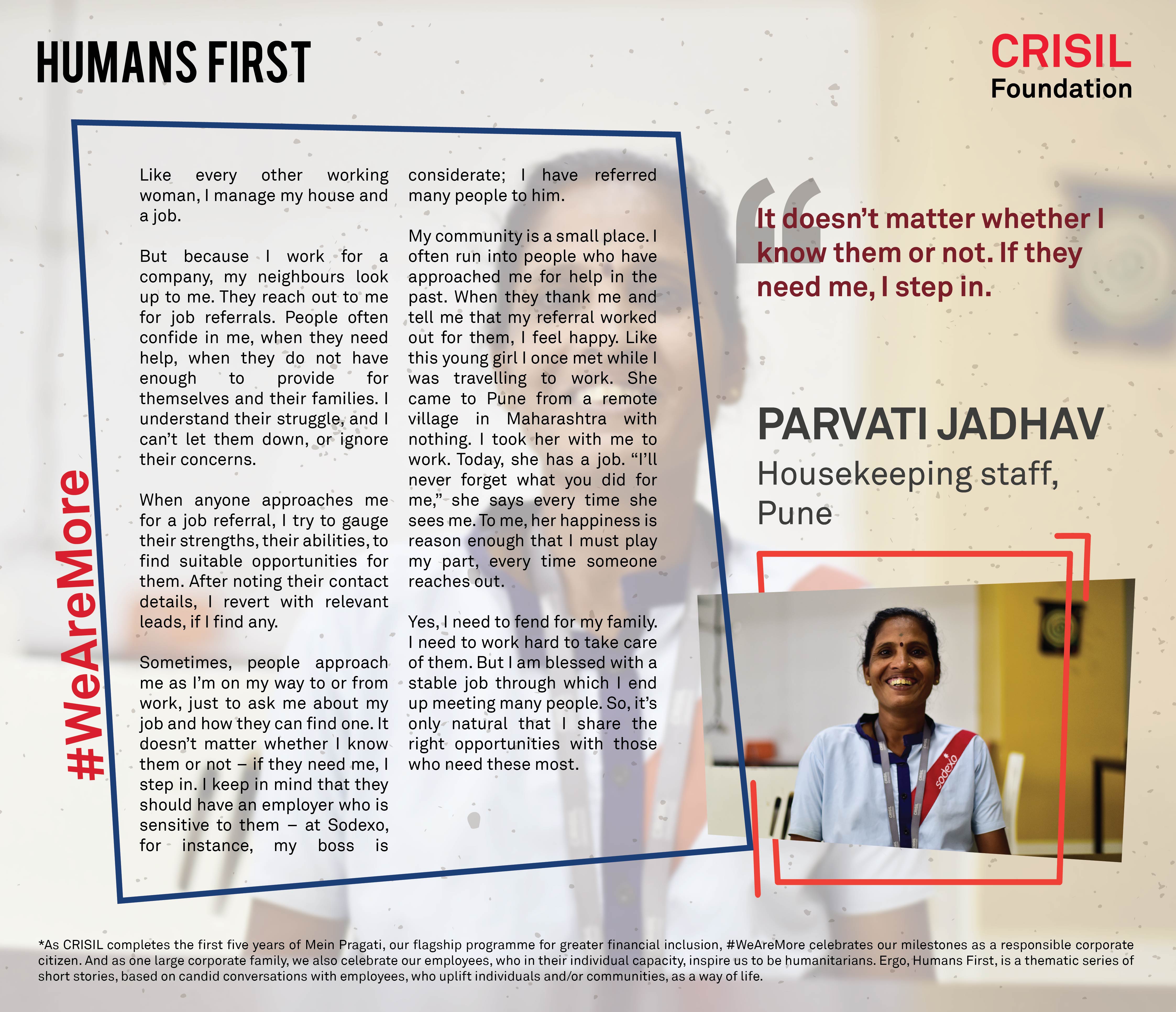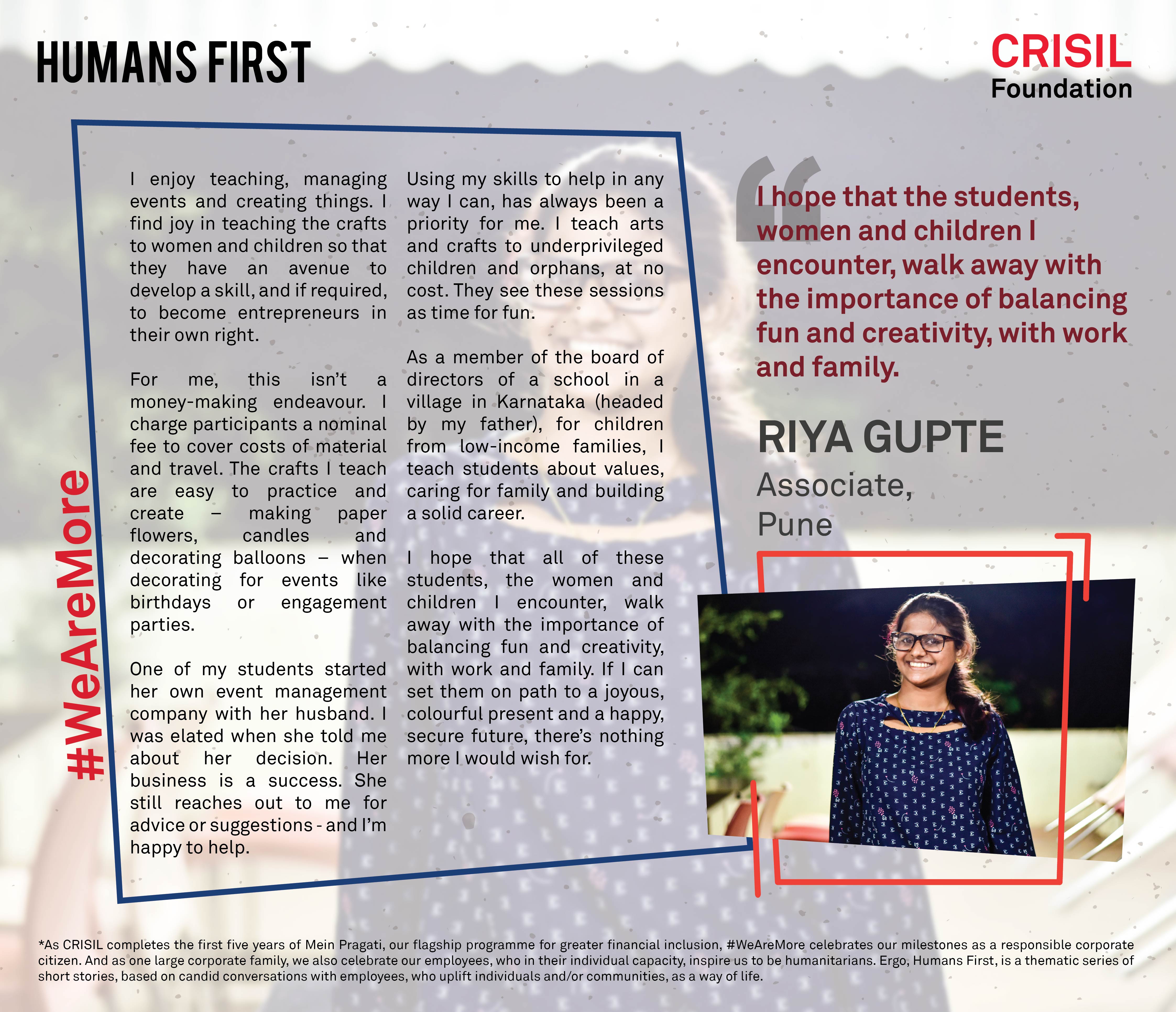 RIYA GUPTE Associate PuneLike every other working woman, I manage my house and a job. But because I work for a company, my neighbours look up to me. They reach out to me for job referrals.