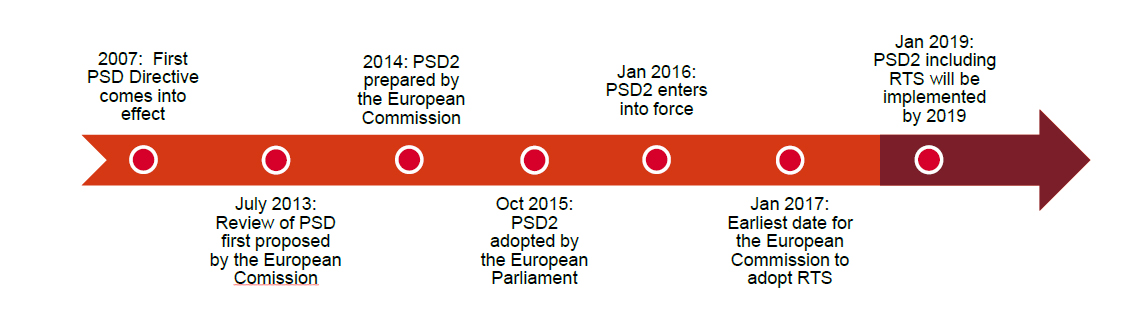2017-2019: PSD2 had become applicable as of January 13, 2018, except for the security measures outlined in the Regulatory Technical Standards (RTS)2. Subject to the agreement of the Council and the European Parliament, RTS is due to become applicable around September 2019.