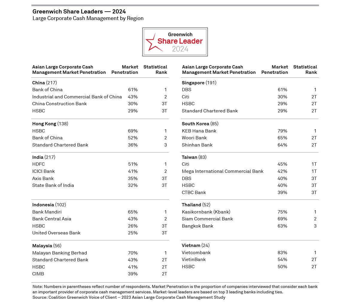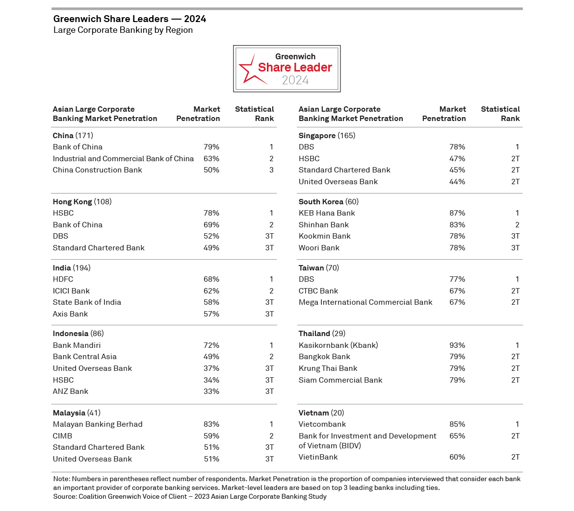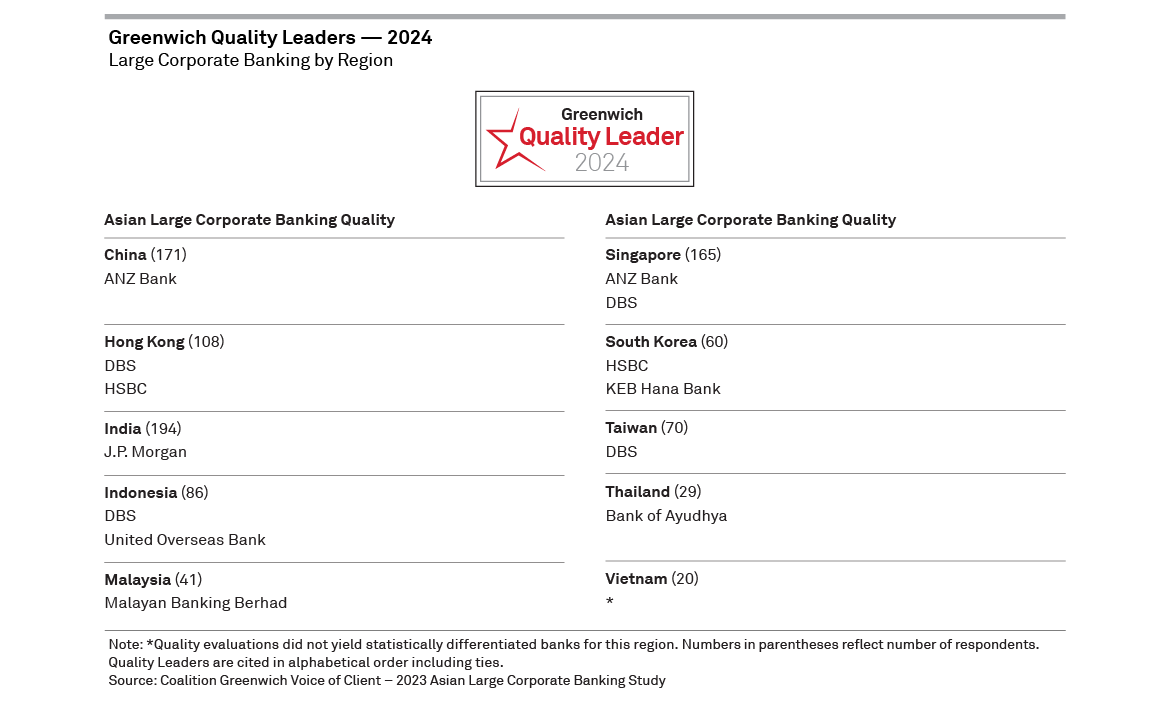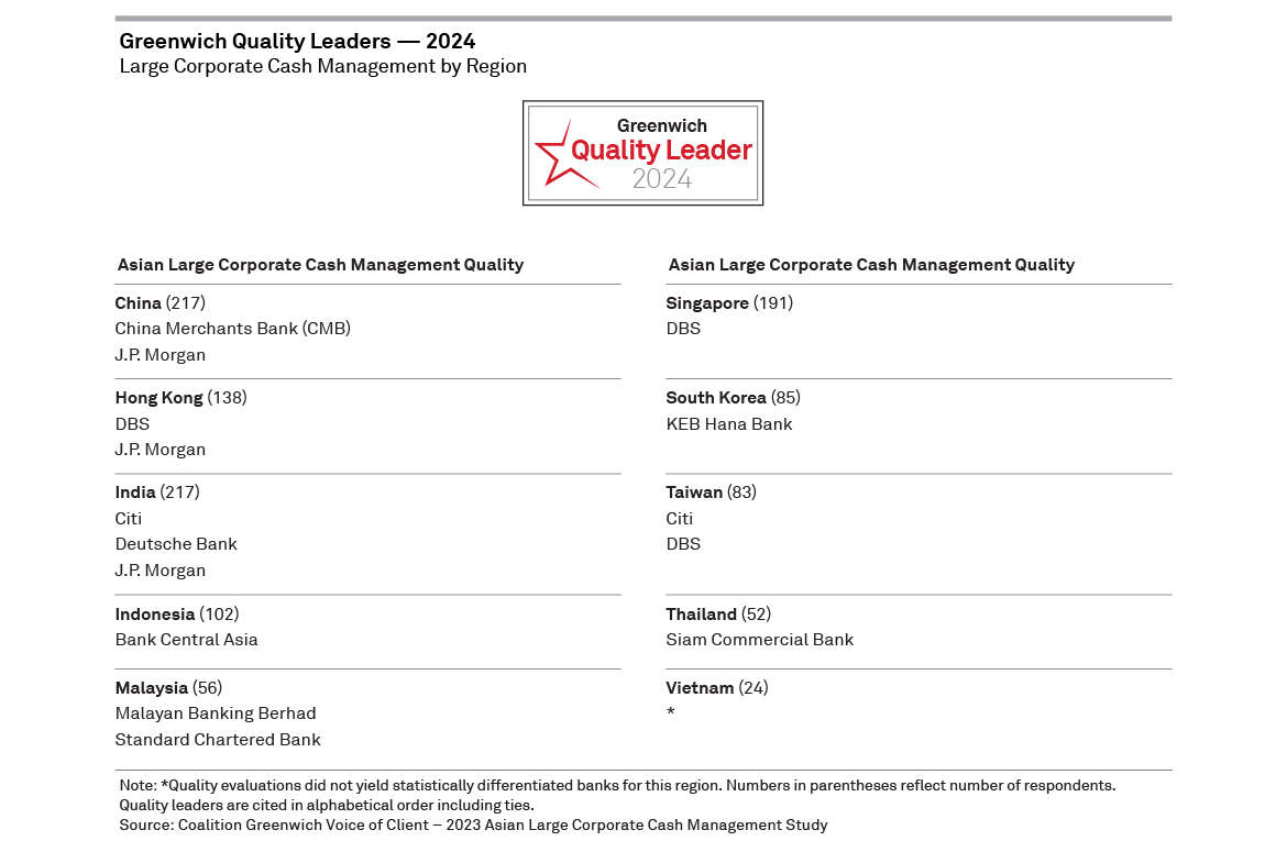 2024 Greenwich Leaders: Asian Large Corporate Banking, Cash Management and FX